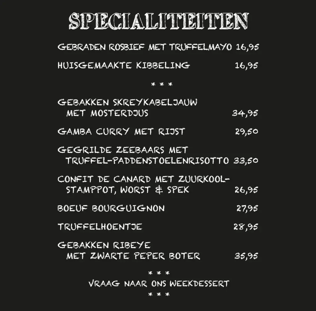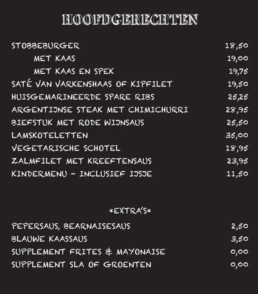 Stobbe kent inmiddels een groot aantal vertrouwde gerechten maar onze specialiteiten, waarvan vele seizoensafhankelijk, wisselen regelmatig. Klik hieronder voor ons menu.